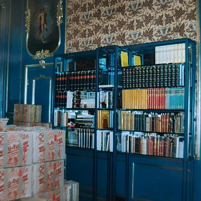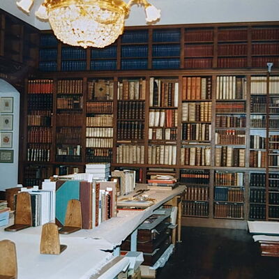Der Aufbau der Bibliothek ging nur in kleinen Schritten voran. Die betreffenden Räumlichkeiten mussten fertiggestellt und dann mit der notwendigen Infrastruktur ausgestattet werden. Außerdem zeigte sich, dass der Bestand der Bibliothek derart umfangreich war, dass sie mehr Räume als die ursprünglich vorgesehenen acht bis zehn beanspruchte. Im Endeffekt wurden es 20 Räume.